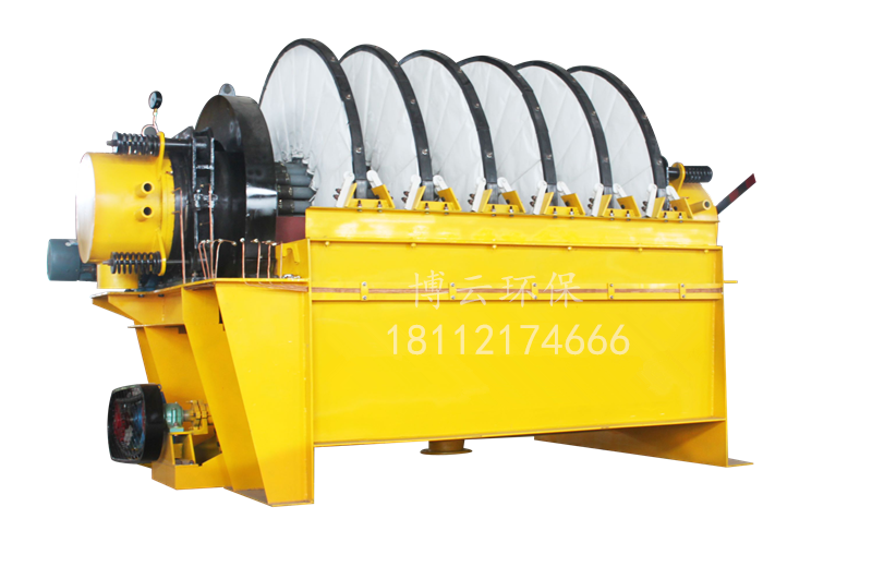 PG系列盤式真空過(guò)濾機(jī) (1)扇形濾板脫水孔分布均勻,孔率合理,筋條尺寸大,由高強(qiáng)度工程塑料制成,壽命提高了2-3倍。 (2)濾液管過(guò)濾數(shù)面大,分配頭腹腔容積大,提高了抽氣率和濾液排放效果。 (3)耐磨錦綸、單或復(fù)絲濾布使脫餅率高且不易堵塞,使用壽命長(zhǎng)。 (4)多點(diǎn)干油泵集中多點(diǎn)自動(dòng)潤(rùn)滑。 (5)濾布自動(dòng)清洗裝置,保持了其良好的脫水效果。 (6)臥式強(qiáng)制高速攪拌、軸端采用橡膠及石墨盤根和水壓差三重密封不漏漿。 (7)主傳動(dòng)無(wú)級(jí)變速,依物料的濃度及流量調(diào)節(jié)(交流調(diào)速電機(jī)或變頻器),以求達(dá)到理想的工作效果 。 (8)每盤由20片扇形板組成,加強(qiáng)了過(guò)濾過(guò)程控制,成餅厚度均勻。 (9)磨擦片采用特制耐磨硼鑄鐵,剛?cè)嵯酀?jì)密封佳,使用壽命達(dá)到十年以上。 (10)濾液管為高強(qiáng)度耐磨陶瓷復(fù)合鋼管,提高壽命10倍以上。 (11)濾液管與濾扇接口去掉下法蘭,采取模具定位直接焊接,減少了90%可能的漏氣點(diǎn)。