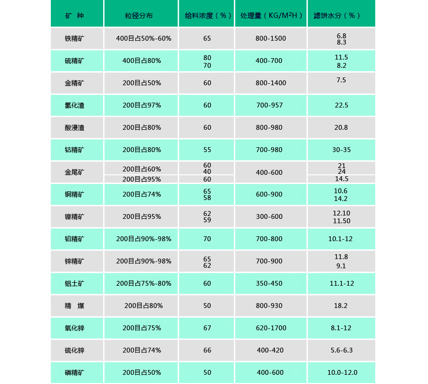 目前已廣泛應(yīng)用于銅、鐵、金、銀、錫、鋁、鉛、鋅、鎳、鈷、鈀、鉬、鉻、銘、 硫、磷、煤、硅、石英、云母、錫土等精礦、尾礦脫水、化工行業(yè)氧化鋅、氧化鉛、硫化鋅、電解渣、浸出渣、爐渣 的脫水及環(huán)保污水泥廢酸處理等。物料細(xì)度從-200到-450目以及各種超細(xì)物料。